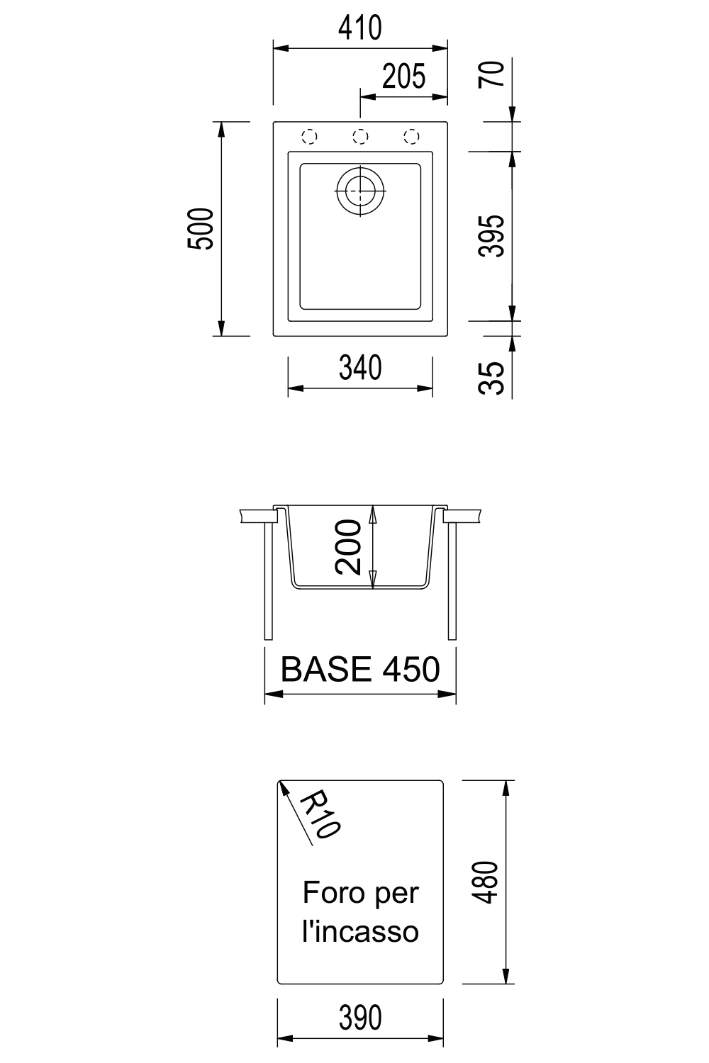 410×500毫米 - 单槽水槽,预留安装孔one水龙头及配件