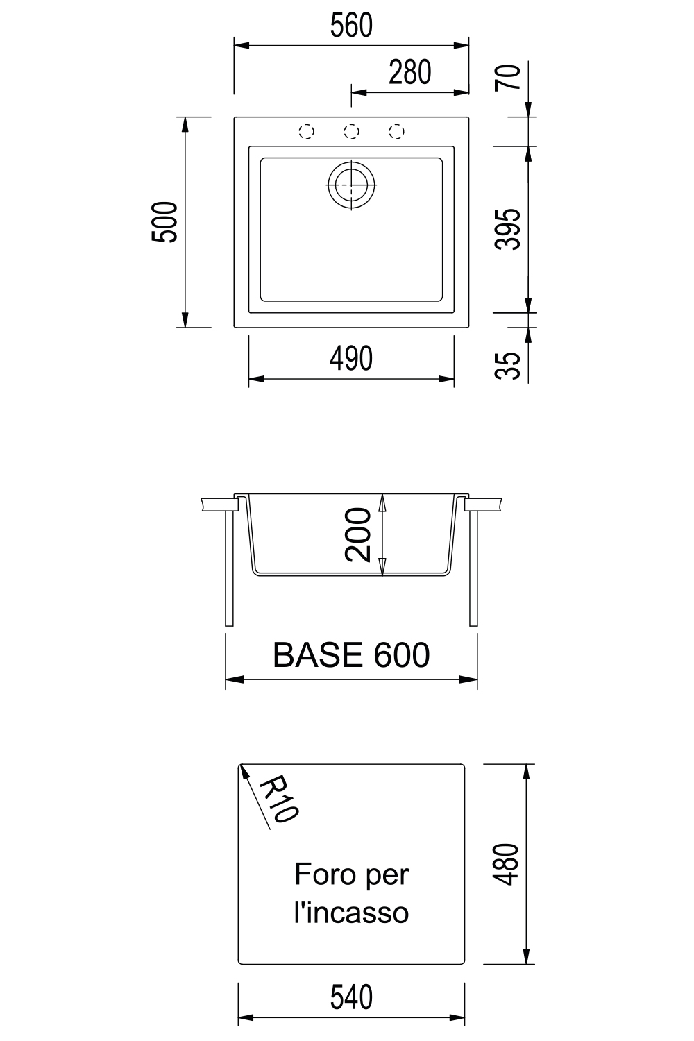 | 凹陷孔 | 540 x 480 毫米 |