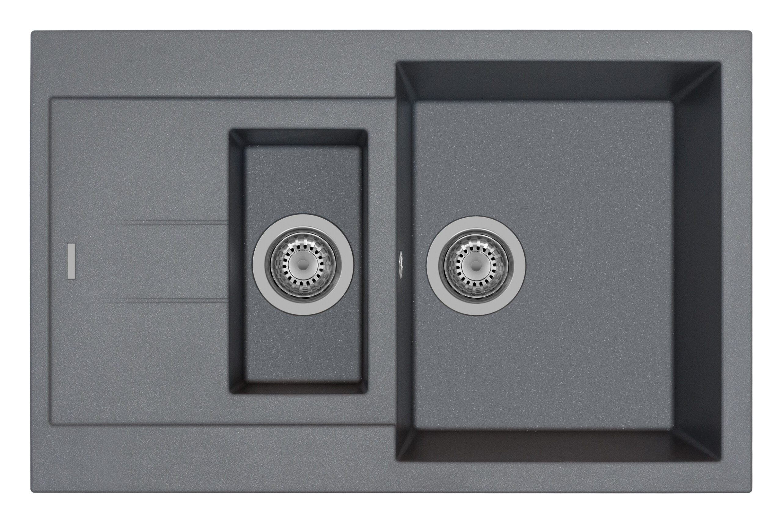 780×500毫米--一个半碗水槽加滴水盘,可翻转,有预钻孔,可安装one水龙头和配件。