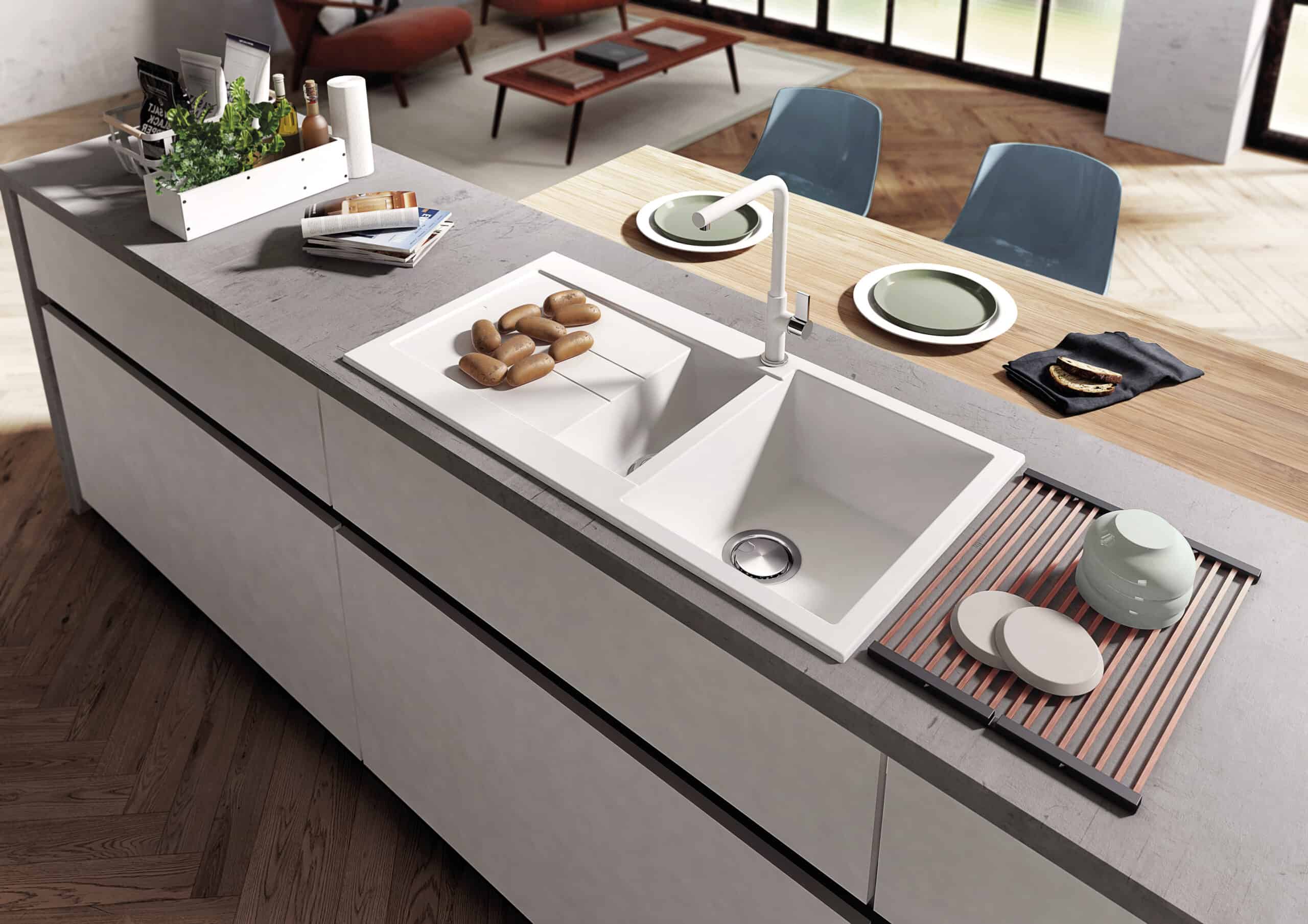 ELEGANCE 水槽的超大碗因其尺寸大而非常实用,是 spaziosa 厨房和大家庭的理想解决方案。