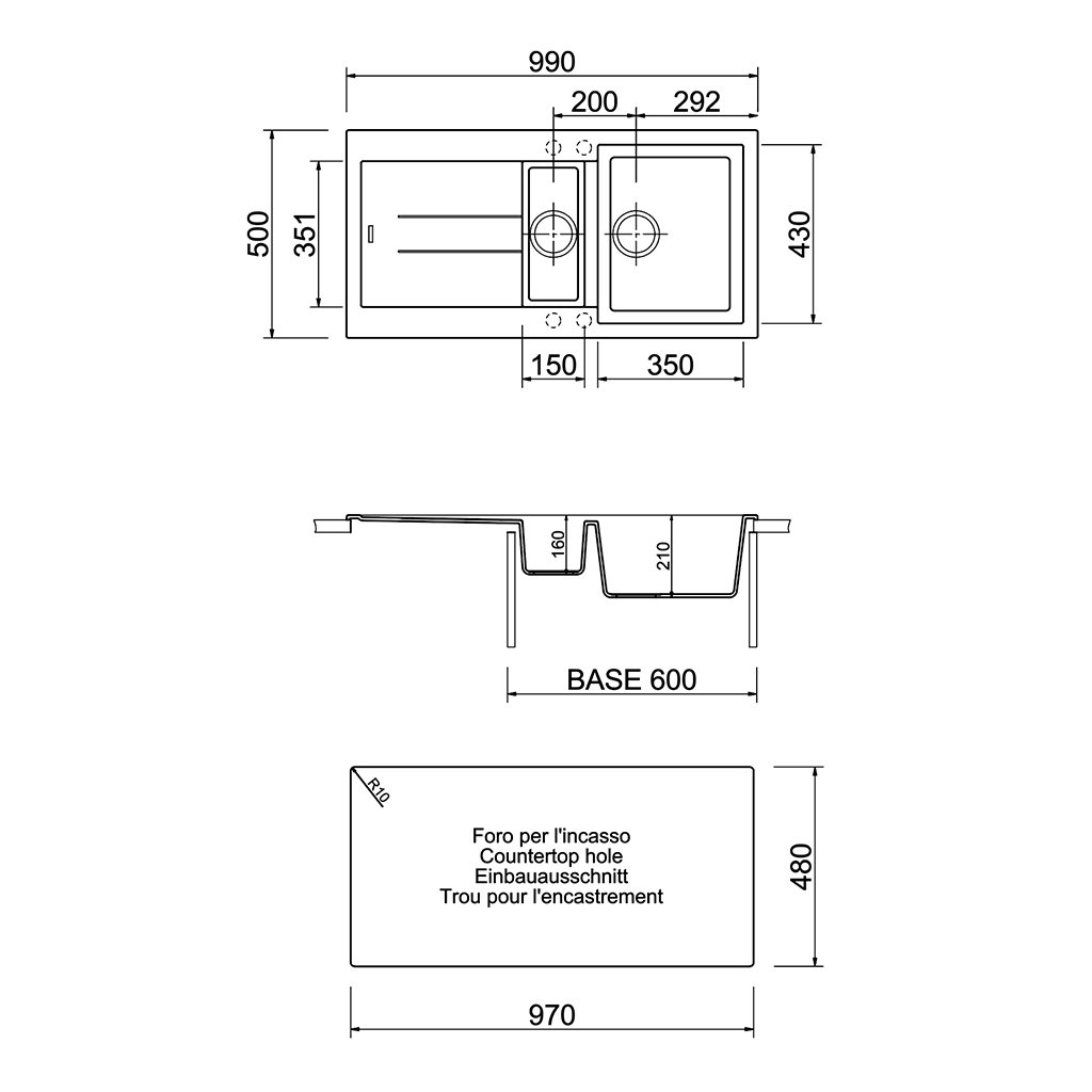 金属颗粒、石英和花岗岩赋予水槽金属色调,与现代环境和不锈钢完美搭配。易于清洁、卫生、耐划痕、耐化学品和高温。