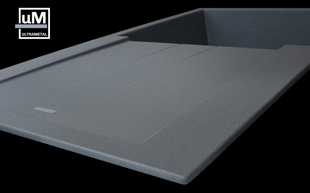 混合物中的金属颗粒与石英和花岗岩晶体一起,在水槽表面形成了金属色调和饰面。冷色调、缎面处理的表面和金属光泽的效果使Ultrametal水槽特别适合现代环境,并能与厨房中常见的不锈钢器具相匹配。Ultrametal水槽易于清洁,非常卫生,耐划痕、耐化学品、耐高温。