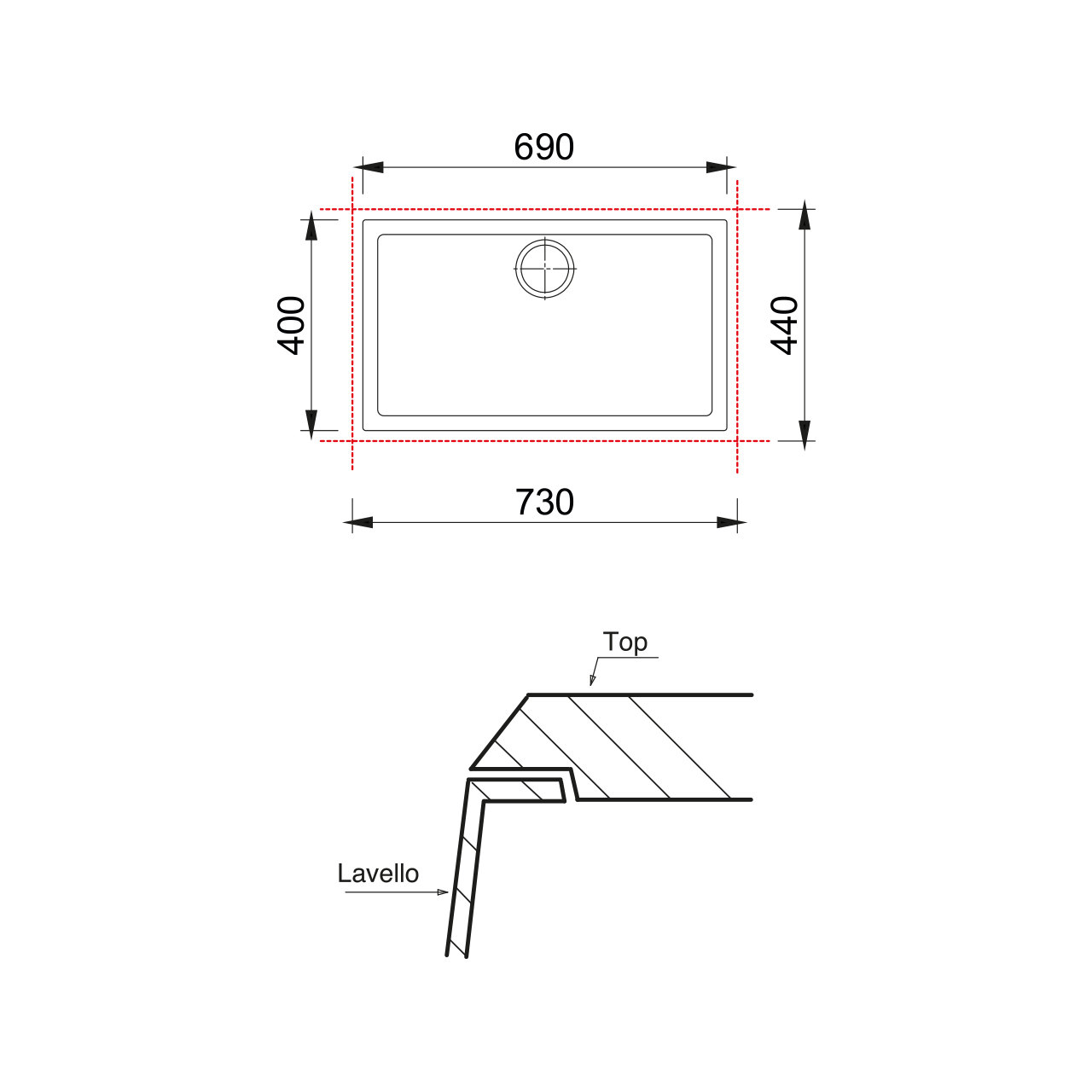 ONE 用于集成安装 one 标配有优雅的矩形溢流口。