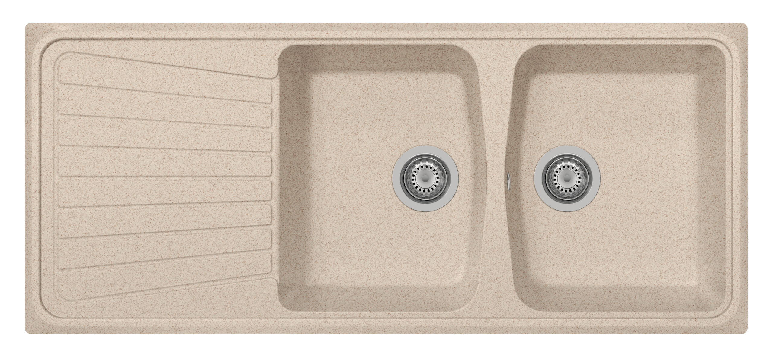 1160×500毫米 - 双槽水槽加滴水盘,可翻转,有预钻孔,可安装one水龙头和配件。