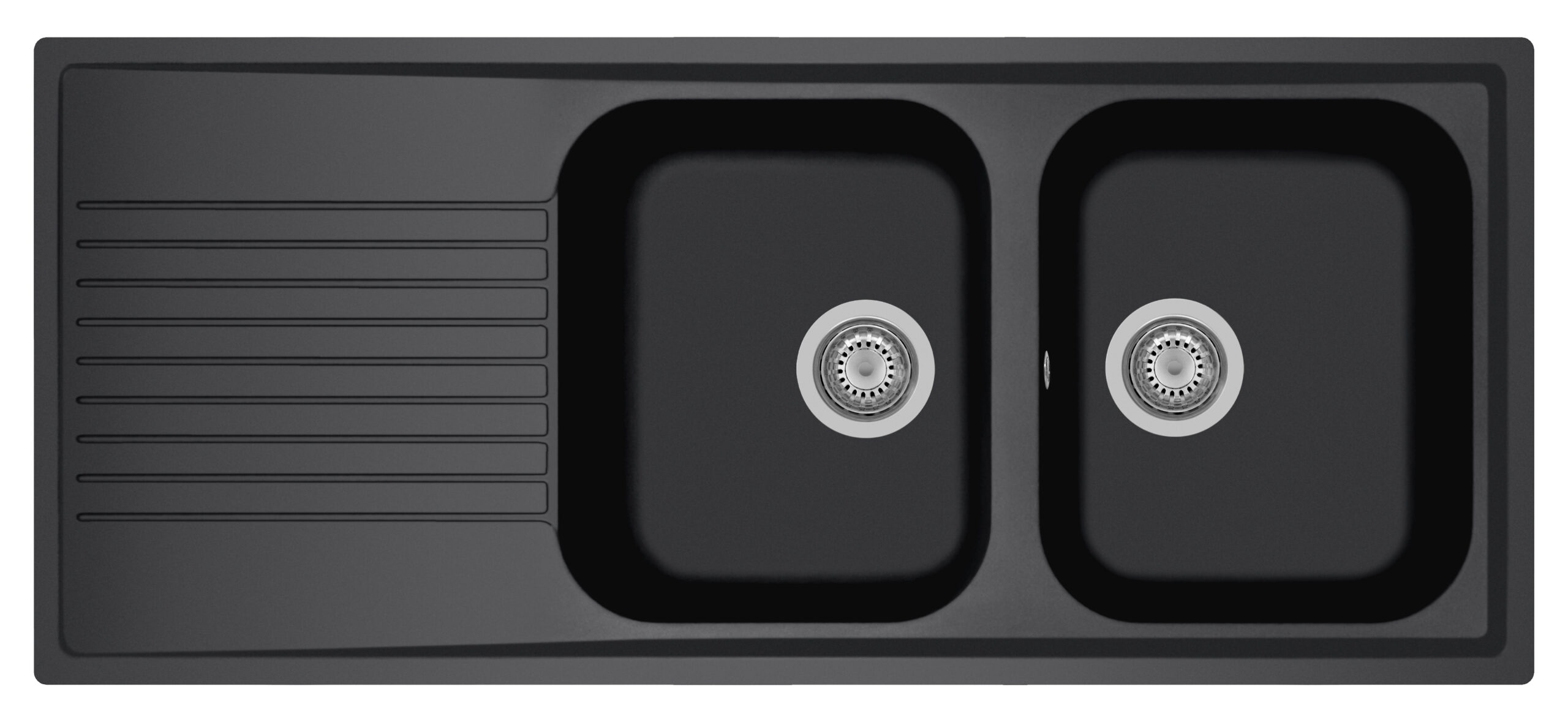 1160×500毫米 - 双槽水槽加滴水盘,可翻转,有预钻孔,可安装one水龙头和配件。