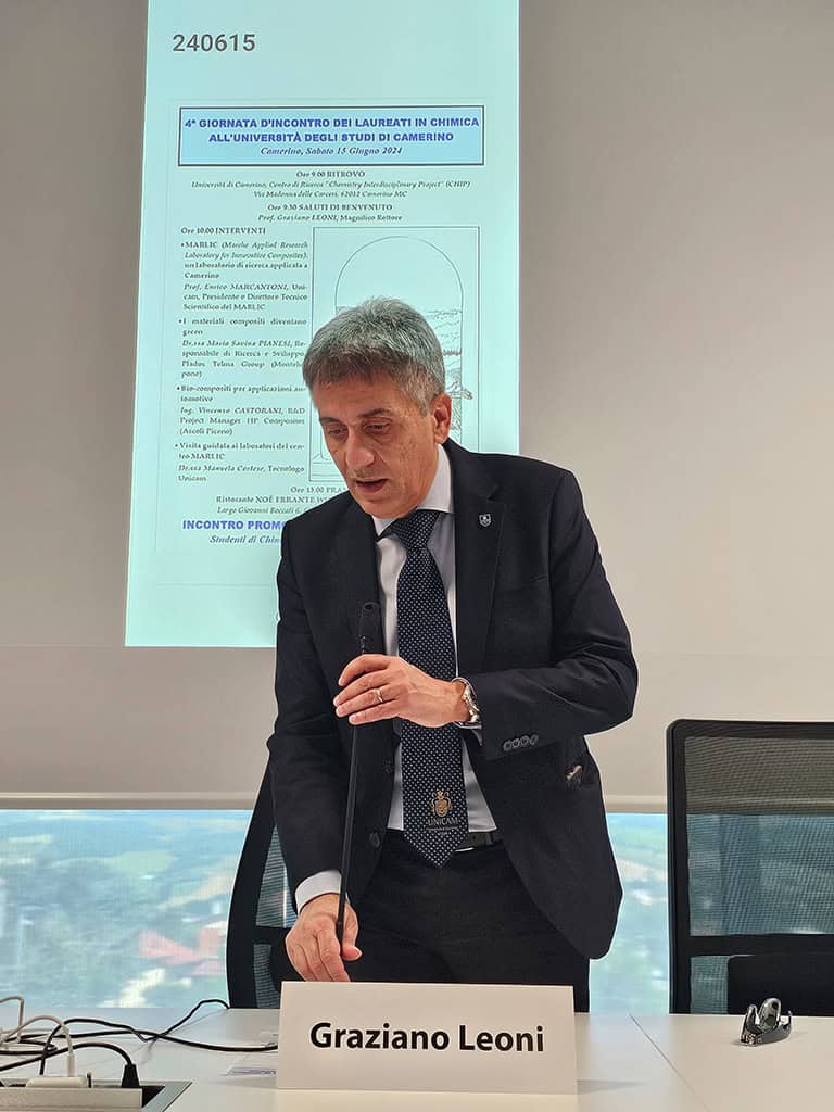 在卡梅里诺 CHIP 化学科学系举行的第四届化学毕业生会议日上,介绍了 LIFE GREEN COMPOSITE 项目。