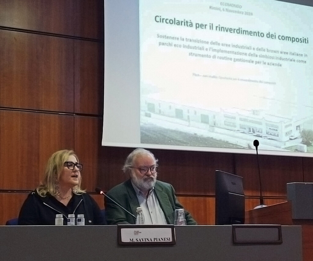 2024 年 11 月 6 日,Plados Telma 集团的 Delta srl 公司在 Ecomondo 介绍了 LIFE GREEN COMPOSITE 项目,主讲人是玛丽亚-萨维娜-皮亚内西(Maria Savina Pianesi)和 GEES RECYCLING 公司的乔治-贝特托(Giorgio Betteto)。在 "ECOMONDO "分会场的含羞草厅,台达公司介绍了绿色转型和工业共生。台达介绍了 Gees 和台达之间正在进行的绿色转型和工业共生。在场的众多听众认真地聆听了研讨会的内容,并提出了许多细节和问题。