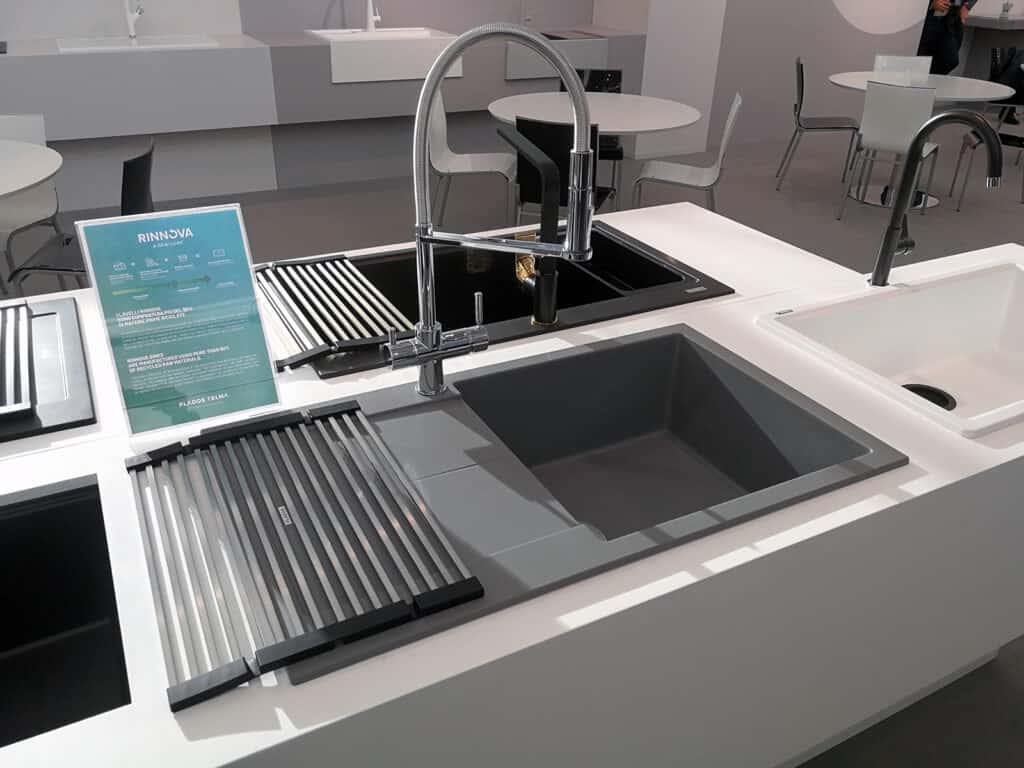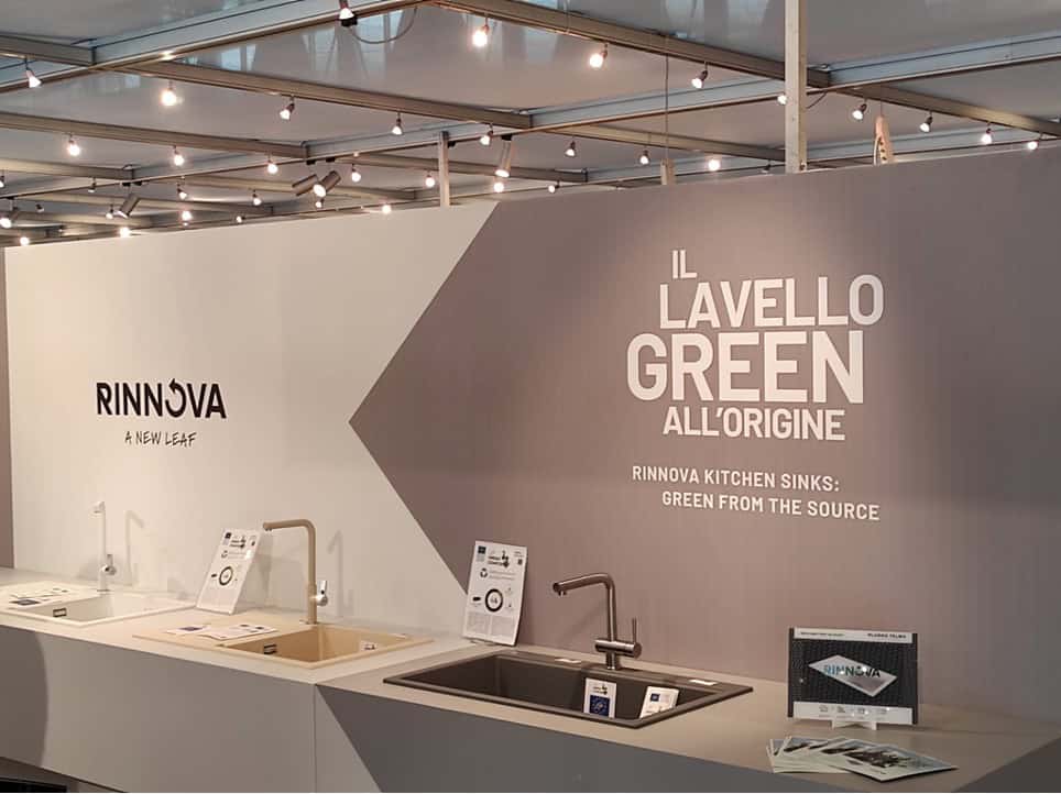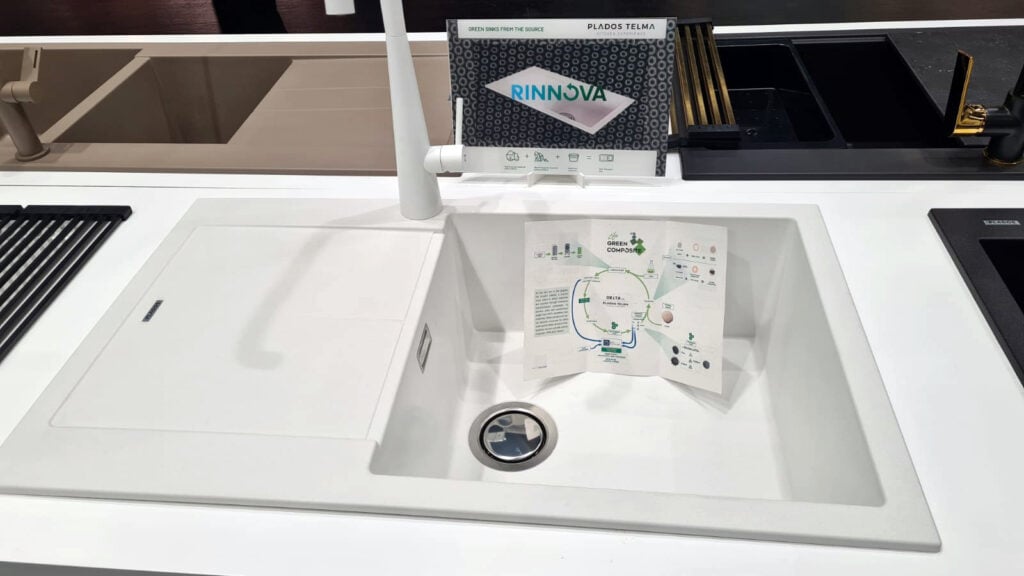 展示one:水槽废料和水槽样品 绿色 的 RINNOVA 系列,采用精致的 Arctic White 饰面。