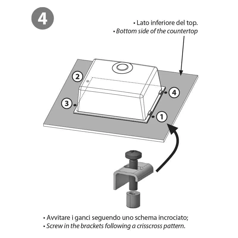 我们所有的水槽都可以以更传统的方式安装,在工作台上方(标准或顶部安装),也可以安装在工作台面下(下置式)。顶下安装套件是为这种安装方式准备的型号(ONE和CUBE系列)以及AM8620ST型号提供的。对于所有其他型号,顶下one安装套件可作为可选配件单独购买(代码GANCIST10)。