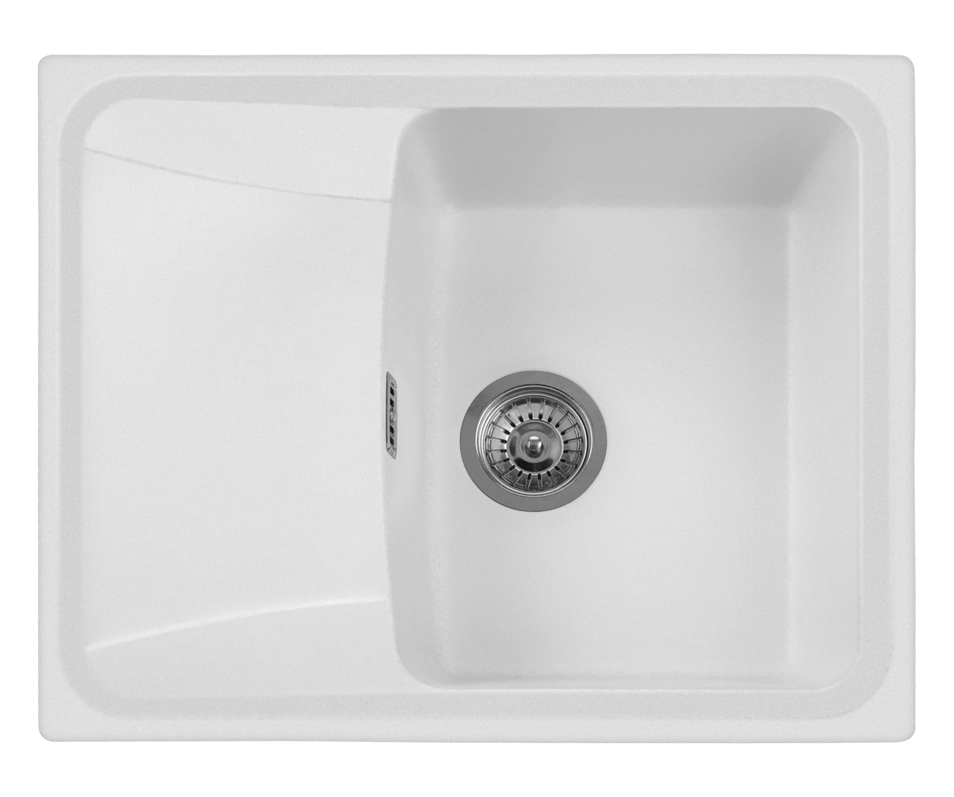 615×500毫米 - 单槽水槽加滴水盘,可翻转,有预钻孔,可安装one水龙头和配件。