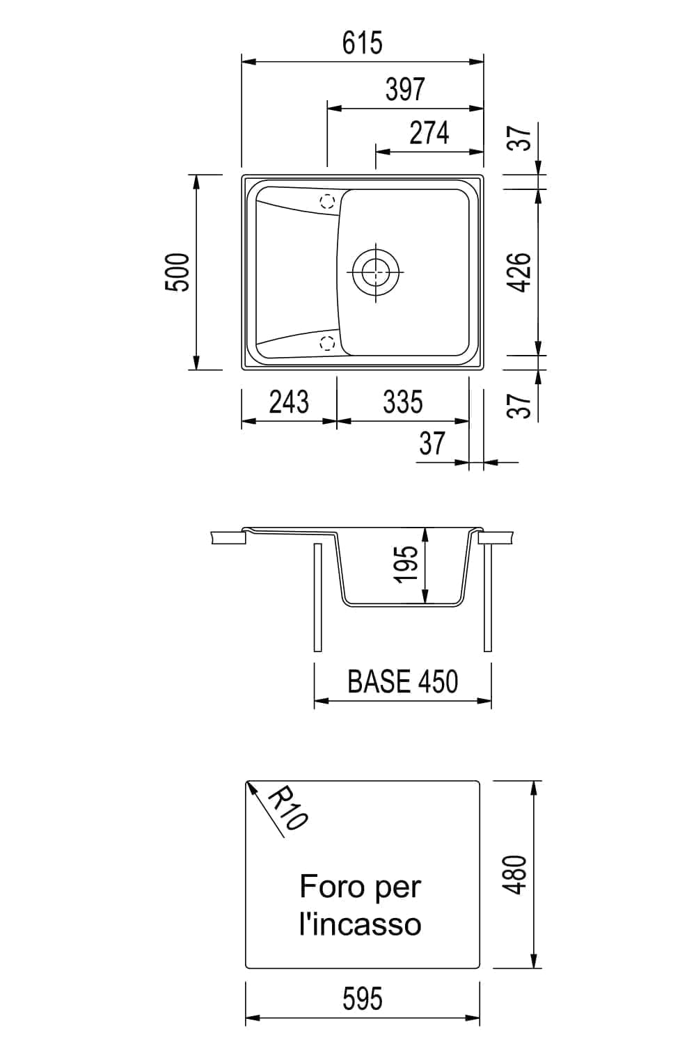 | 凹陷孔 | 595 x 480 mm |