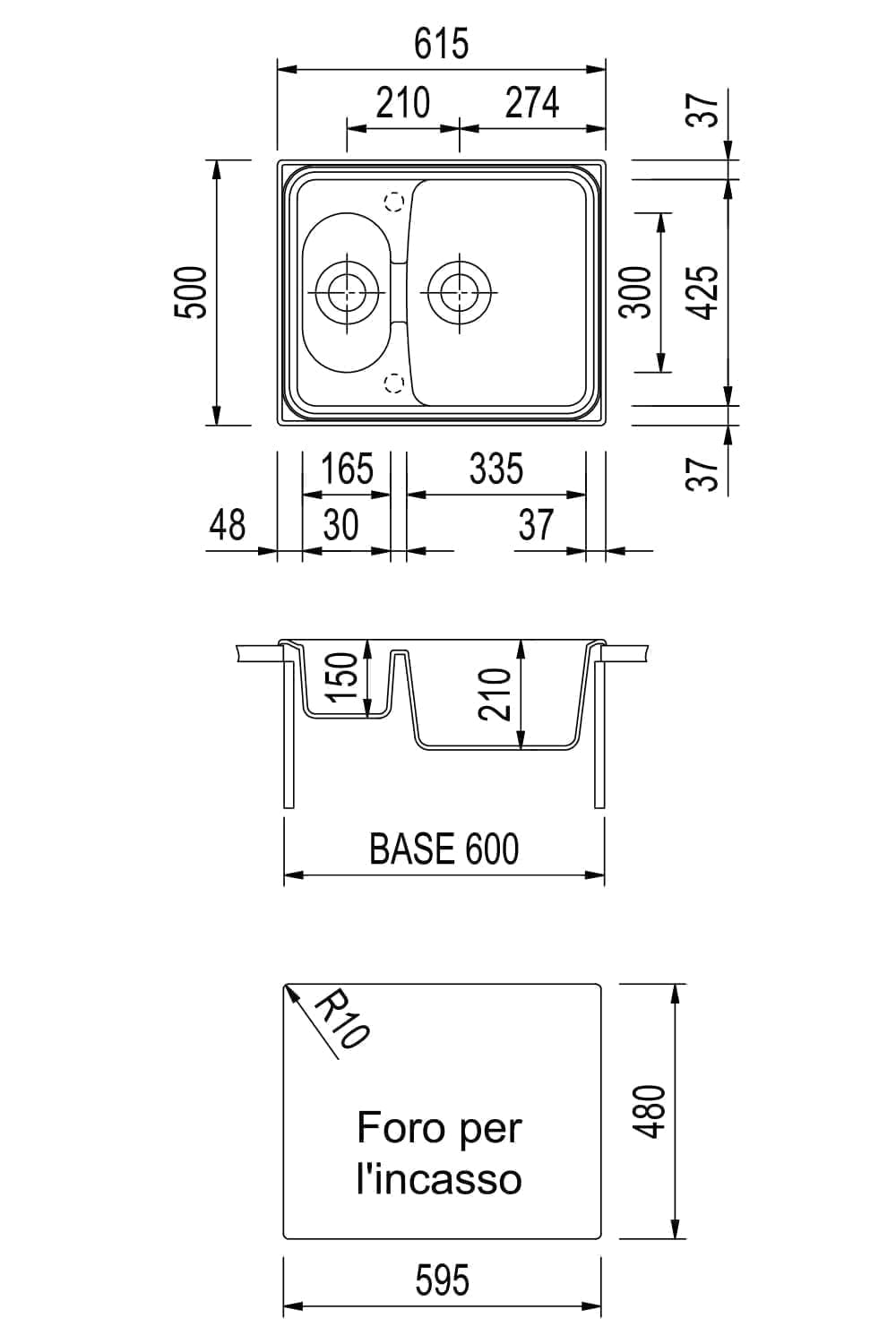 | 凹陷孔 | 595 x 480 mm |
