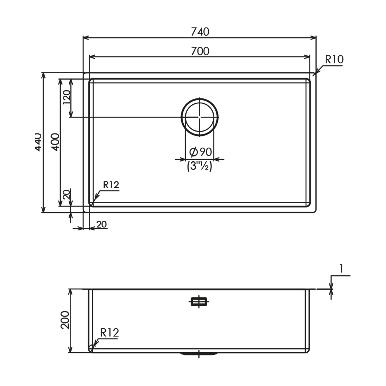 740×440毫米 - 单槽水槽,不锈钢,用于台下安装one