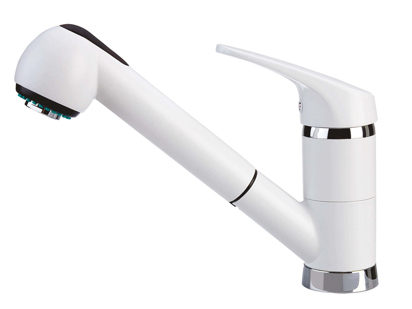 单把手龙头,带拉出式双喷射手持花洒。