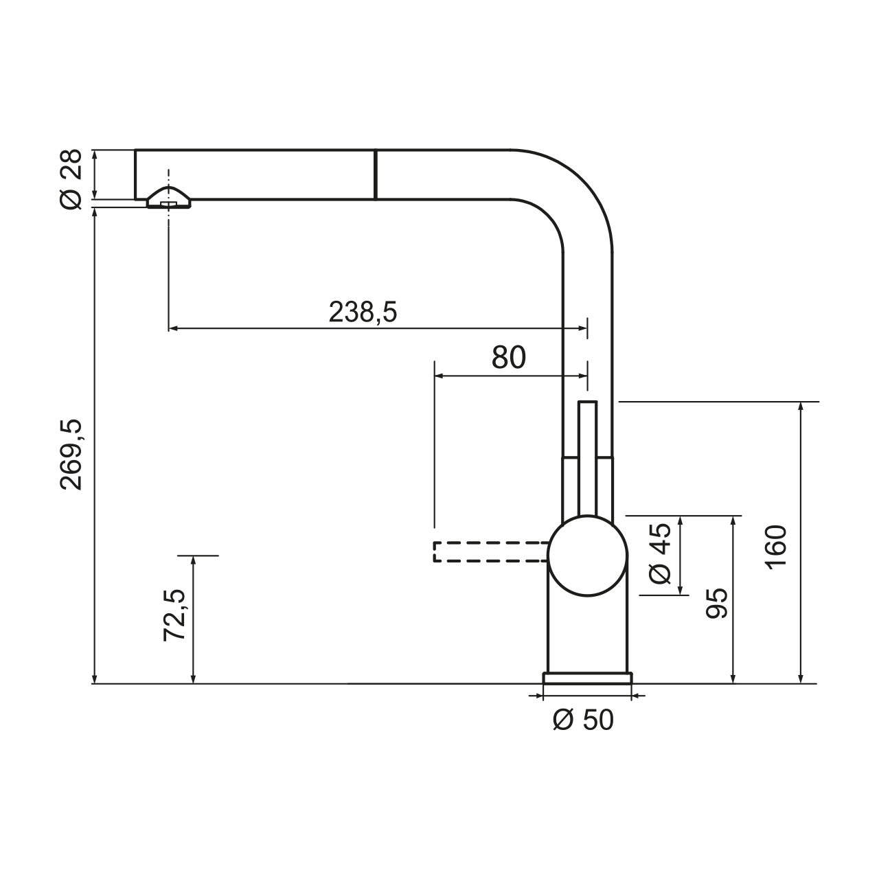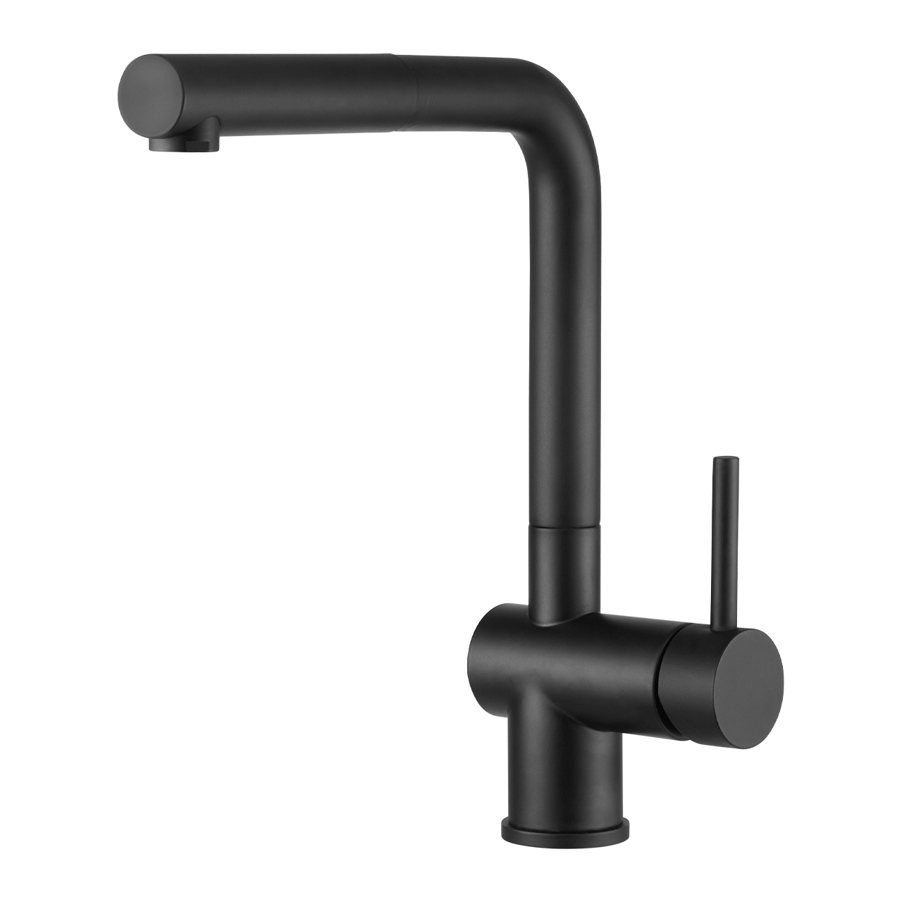 单把手龙头,带L型出水口和拉出式喷头。