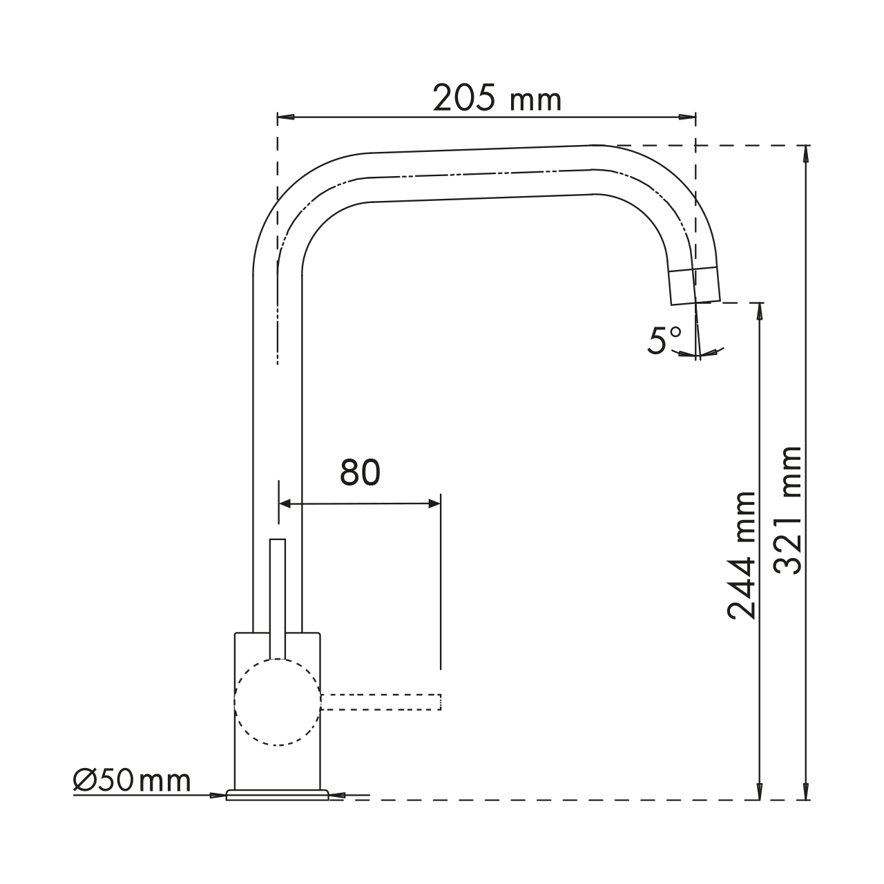 单把手龙头,带管状出水口。
