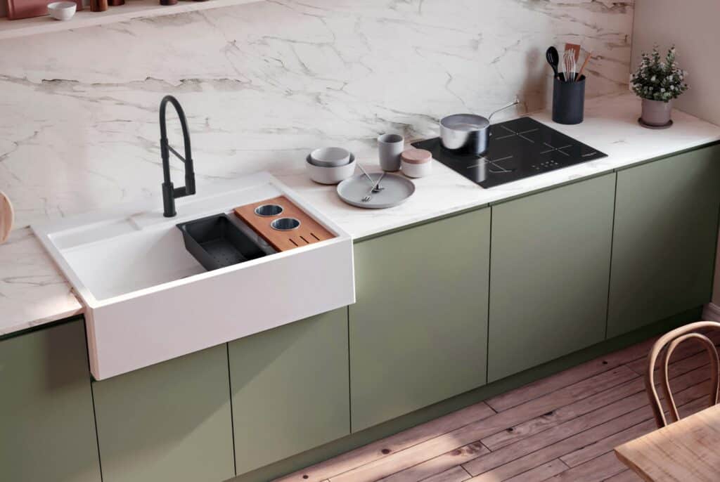 因此,循环经济和环境可持续性也来到了厨房。 绿色敏感度 关于 材料 的家具、 使用家用电器, 节水.