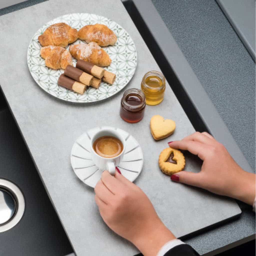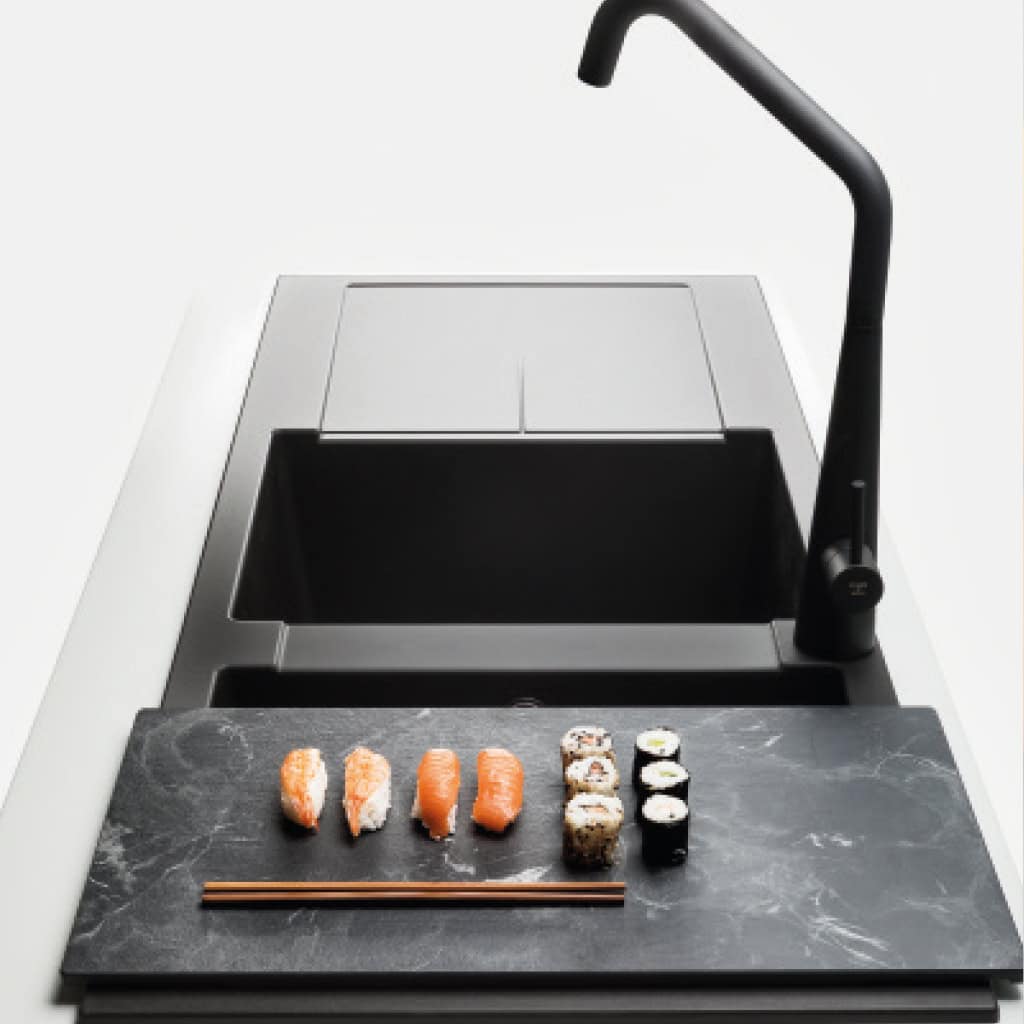 HPL、红枫木或聚乙烯材质的滑动砧板可将水槽变为一个实用的食物准备中心formano。